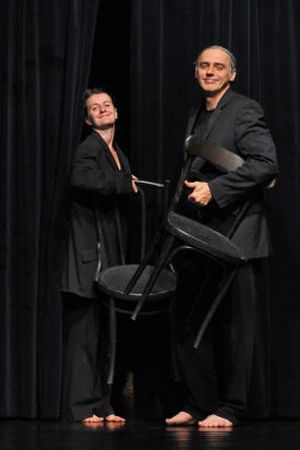 Campée sur ses pieds nus, Joëlle Léandre empoigne comme l'adversaire d'un futur combat la contrebasse sur laquelle elle va jouer une heure durant. Face à elle, Akosh Szelevényi s'installe en maître du jeu de ses multiples et étranges instruments. Tous deux sont des partenaires musicaux de longue date du chorégraphe d'origine hongroise Josef Nadj, qui pratique depuis plusieurs années des petites formes spectaculaires ciselées et énigmatiques. Akosh Szelevényi avait notamment participé à la performance Paysage après l'orage en septembre 2008 dans le cadre du festival Jazz à la Villette, ou à Entracte en février dernier au Théâtre de la Ville.