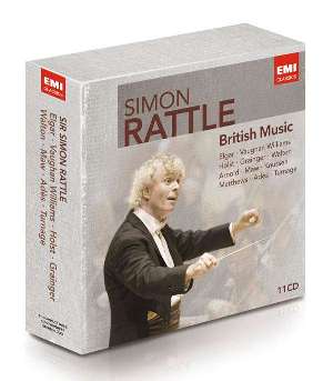 Edward Elgar (1857-1934) : Variations sur un thème original «Enigma», Op. 36, Falstaff, étude symphonique en ut mineur, Concerto pour violon en mi mineur, Op. 61, The Dream of Gerontius, Op. 38 ; Ralph Vaughan Williams (1872-1958) : The Lark Ascending, On Wenlock Edge, Songs of Travel ; William Walton (1902-1983) : concerto pour violoncelle, symphonie n°1 en mi bémol majeur, Belshazzar's Feast ; Gustav Holst (1874-1934) : The Planets, Op. 32 ; Colin Matthews (né en 1946) : Pluto, the Renewer ; Malcom Arnold (1921-2006) : concerto pour guitare ; Oliver Knussen (né en 1952) : Flourish with fireworks ; Percy Grainger (1882-1961) : In a Nutshell, Suite, train music, Country Gardens, Lincolnshire Posy, The Warriors ; Thomas Adès : Asyla, Op. 17 ; Nicholas Maw (1935-2009) : Odyssey ; Mark Anthony Turnage (né en 1960) : Drowned Out, Kai, Three Screaming Popes, Monumentum, Ceres. Janet Baker, mezzo-soprano ; John Mitchinson et Robert Tear, ténors ; Thomas Allen, Thomas Hampson, baryton ; John Shirley–Quirck, baryton basse ; Nigel Kennedy, violon ; Ulrich Heinen et Lynn Harrel, violoncelle ; Julian Bream, guitare ; City of Birmingham Symphony Chorus, The Cleveland Orchestra Chorus, Rundfunkchor Berlin, direction : Sir Simon Rattle. 1 coffret de 11 CD EMI. Enregistré entre 1986 et 2005. Notice de présentation en : anglais, allemand et français. Durée : 11h26