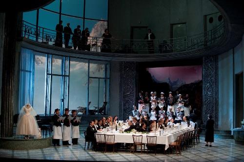 Il est si rare d'être émerveillé par une mise en scène qu'on finit par être reconnaissant qu'elle ne gâche pas tout. Celle de Marco Arturo Marelli limite ainsi les dégâts mais également sa fonction. Il n'est jamais facile de donner à voir la simplicité et dans cet opéra, elle ne manque pas. Chaque air est une ode à la pureté du sentiment. En installant l'histoire dans un hôtel luxueux des Alpes, dans le marbre, les moulures, les espaces surdimensionnés, la pureté de l'amour d'Amina et d'Elvino – ces petites gens – acquiert toute sa valeur. C'est là que réside le génie du décor et l'utilité de sa grandiloquence.