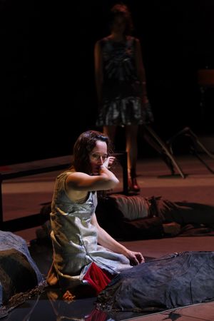 Encore et toujours le fameux accord de Tristan, symbole de ce désir inassouvi, de cette tension inhérente à ce couple légendaire… Et il revient, il jalonne toute la partition de Wagner et donc toute celle de . En effet, que ce soit dans un style rock plus ou moins à tendance psychédélique, des airs opératiques directement empruntés au maître de Bayreuth avec une réduction orchestrale au piano, des interventions de la guitare électrique en solo… l'accord va et vient, va et revient comme une vague, comme l'attraction inaltérable entre les deux protagonistes dans ce spectacle musico-littéraire. De plus, les Leitmotive wagnériens retentissent, illustrant musicalement le discours poétique, déconstruit et reconstruit à sa manière de Lancelot Hamelin. Le point de départ : la mort de Tristan. Et la suite : un flashback avec une réappropriation du texte et de la musique respectivement par Lancelot Hamelin et dans des décors qui évoluent au fil des mots, des sons et surtout des lumières, ingénieusement variées par Jean-Marc Skatcho pour créer des atmosphères empreintes de poésie, de nature, de rêves… Car ce spectacle fait rêver, parle au spectateur. Il l'emmène dans des lieux oniriques colorés, sonores, très sonores parfois trop d'ailleurs, grâce à l'intervention de cinq musiciens très efficaces qui se substituent à l'orchestre wagnérien. A noter le toucher délicat de la pianiste Mara Dobresco sur un instrument malheureusement pas très bien accordé, la dextérité du guitariste et du trompettiste Arthur Simon, la polyvalence subtile de et la précision de Stan Bruno Valette dans les différents effets.