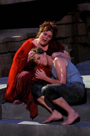 Sur le plateau, l'Opéra national du Rhin a réuni une distribution de grand format. Révélée au public français dans Die Feen de Wagner au Théâtre du Châtelet la saison dernière, en Prima Donna puis Ariane confirme ses moyens colossaux. Souffle inextinguible, lui autorisant des phrasés et des tenues infinies, puissance décoiffante, rondeur du timbre du grave charnu à l'aigu dardé, tout annonce une future grande Brünnhilde. Et avec cela, de la souplesse, des irisations, des transparences, des sons filés ! En puissance, le Ténor/Bacchus du claironnant ne lui cède en rien mais se révèle plus avare de nuances. Il faut dire que, comme à son habitude, n'a pas ménagé son ténor et lui a composé une partie meurtrière, que domine cependant haut la main. Avec de tels solistes, le duo final en vient à évoquer le duo du 3ème acte de Siegfried, avec assaut de décibels obligé. Trop ? Peut-être… Mais l'on doit confesser que ce long duo, qui nous a si souvent paru un interminable tunnel, nous a ici passionnés musicalement de bout en bout.