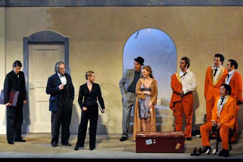 Crédit photographique : (Ariane) & (Bacchus) ; (Le Compositeur), (Le Maître de musique), Ruth Orthmann (Le Majordome), (Zerbinette), Guy de Mey (Le Maître à danser), Thomas Oliemans (Arlequin), (Scaramouche), Andrey Zemskov (Truffaldino) & Enrico Casari (Brighella) © Alain Kaiser