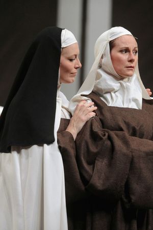 Décapitées à l'été 1794, les Carmélites martyres de Compiègne sont les victimes d'un crime commis au nom d'une idéologie, d'un jugement sommaire et d'une exécution arbitraire, qui pourraient prendre place dans de nombreux autres contextes historiques et politiques. Il est vrai que l'essentiel de l'action se passe dans l'espace clos du Carmel : la tragédie est intérieure, il s'agit plus de celle de Blanche face à ses peurs que de la lutte des révolutionnaires contre les religieuses. Un rien moins détaillés que chez Bernanos – le livret d'opéra ne peut éviter quelques coupes dans le texte original – les personnages sont en revanche caractérisés par leurs tessitures bien distinctes et les motifs qui leurs sont associés. Ce sont les parcours intérieurs de ces femmes – la foi puis le doute de Mme de Croissy, la peur puis le courage de Blanche, la dureté et la tendresse de Mère Marie – que Bernanos puis Francis Poulenc décrivent sur fond de Terreur révolutionnaire. Et après eux Gilles Bouillon, dans une lecture lumineuse de l'œuvre. Comment ne pas être touchés par la justesse du jeu, la simplicité d'une direction d'acteurs évidente ? La scénographie est d'une grande sobriété – rien d'anecdotique qui viendrait distraire le spectateur de l'essentiel. De grandes toiles tendues de couleur écrue qui viennent se moduler différemment selon les douze tableaux pour évoquer les salles du couvent. Les lumières de Michel Theuil, tour à tour topographiques ou symboliques, créent encore des espaces à l'intérieur du décor de Nathalie Holt. Perdues aux yeux des hommes, mais glorieuses par leur martyre, les Carmélites inspirent à cette production plus de joie que de douleur. Gilles Bouillon montre leur gloire après l'humiliation de Blanche et la prison pour ses sœurs, la «descente» de la charrette avant la «montée» vers l'échafaud dans un vaste tableau baigné de lumière, symbolisant la joie du matin de Pâques. Pas de guillotine sur scène, mais des religieuses qui tiennent dans leurs mains une tête, portée dans un geste d'offrande, avant de s'écrouler au son du couperet, l'une après l'autre sur le Salve Regina final. Ainsi, plus que la décapitation historique des Carmélites, le metteur en scène montre le sacrifice de la religieuse qui doit être détachée de tout, et même de soi-même, comme le dit l'ancienne prieure à Blanche lorsqu'elle demande à être admise comme postulante.