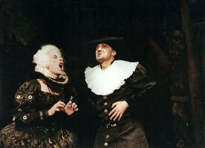 Chercheur universitaire exigeant, Jean-Luc Impe a lardé sa parodie d'éléments appartenant à ce premier opéra-comique (accents, gromelot, pantomime, marionnettes, écriteaux etc) ; et, en homme de théâtre avisé, il les a fondus dans le continuum parodique qu'il a conçu. Sa scénographie et son travail scénique trouvent le juste point d'équilibre : ce dispositif évoquant les tréteaux pour le plein-air évite le bricolage ; et le ton parodique des acteurs ne tombe pas dans la ringardise.