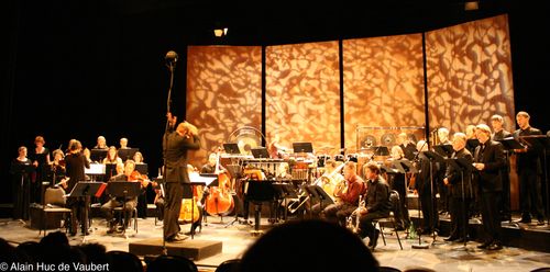 Donnée en création, la fresque monodique pour chœur mixte et voix enregistrées Vision met en musique un texte de Catherine Peillon pour le théâtre : «Mon sourire est la courbure du soleil la voûte qui soutient la nuit…». Zad Moultaka explore là la mémoire en une sorte de contrepoint mêlant le chœur à des voix enregistrées de ses œuvres précédentes. Cette construction élaborée dégage une émotion certaine. Enfin avec Nepsis un double chœur séparant les voix masculines et féminines s'associe à un ensemble instrumental formé de cordes, vents, piano et percussions savamment disposé. Composé sur un poème de la libano américaine Etel Adnan, cette pièce brillante, contrastée et exigeante pour les interprètes, dont elle appelle l'imagination est une forme de Kaddish à la mémoire d'une amie de la poétesse disparue discrètement. La disposition des musiciens de l'ensemble Pythagore et la rythmique très précise de leurs interventions règlent une chorégraphie d'une élégance certaine.