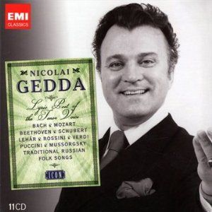L'héritage discographique légué par Nicolaï Gedda à EMI Classics est absolument considérable, et on se demande ce que le ténor suédois, dont les enregistrements s'étalent ici sur exactement un quart de siècle, n'a pas confié à la postérité. De Bach à Poulenc, de Gluck à Wagner, de l'opéra et l'opérette à l'oratorio, de la mélodie française au lied allemand en passant par des chansons traditionnelles les plus diverses, il semble que tous les genres, répertoires et styles lyriques soient représentés sur ce généreux coffret de 11 CD, au minutage extrêmement serré.