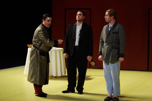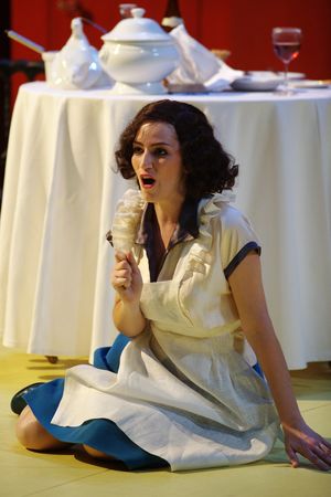Bobigny. MC 93. 24-VI-2010. Bohuslav Martinů (1891-1959) : Mirandolina, opéra en trois actes sur un livret du compositeur d’après La Locandiera de Carlo Goldoni. Mise en scène : Stephen Taylor. Décors : Laurent Peduzzi. Costumes : Nathalie Prats. Lumières : Christian Pinaud. Avec : Olivia Doray, Mirandolina ; Alexandre Duhamel, le Chevalier ; Vincent Delhoume, le Comte ; Damien Pass, le Marquis ; Stanislas de Barbeyrac, Fabrizio ; Carol Garcia, Hortenzia ; Aude Extremo, Dejanira ; Manuel Nuñez Camelino, le serviteur du Chevalier. Orchestre-Atelier Ostinato, direction : Marius Stieghorst.