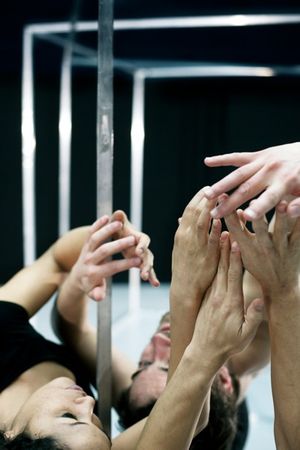 Dans un décor de structures géométriques en aluminium, signé du plasticien Antony Gormley, les danseurs font montre une heure et demie durant d'une incontestable énergie. Dix-huit artistes venant de treize pays, parlant quinze langues, c'est une équipe multiculturelle dans laquelle chacun parle ou chante avec son idiome natal. Avec ses comédiens-musiciens-danseurs, Sidi Larbi Cherkaoui fait dans l'humour métaphysique et dans le symbolisme mondialiste. Sur une estrade en arrière-scène, les musiciens passent avec aisance et brio de la musique ancienne à la musique indienne, en passant par les tambours Kodo japonais, donnant à l'ensemble une allure de rituel.