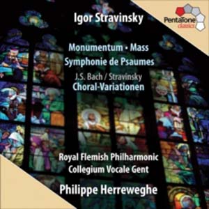 C'est dans les « petites formes » que le musicien est à son meilleur. Sa gestion attentionnée des masses et des équilibres font des lectures du Monumentum Pro Gesualdo et de la Messe pour chœur et vents, des modèles du genre. Rompu aux musiques chorales baroques et à leurs petites formes, le chef sculpte patiemment les blocs instrumentaux et choraux. Les couleurs du chœur font le reste de la magie. En intermède dans ce programme, Herreweghe nous propose l'instrumentation stravinskienne du Choral-Variationen über das Weihnachtslied de Bach. Certes, anecdotique, cette édition montre le peu de scrupule du compositeur. En effet, il n'hésite pas à ajouter des lignes de contrepoint au chef d'œuvre du cantor de Leipzig…