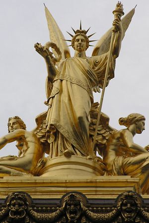 Crédit photographique : La Poésie de Charles Gumery (couronnement de la façade coté droit du Palais Garnier) © Stianbh ; Augustin Savard © DR ; André Gailhard © DR ; Georges Hüe © DR