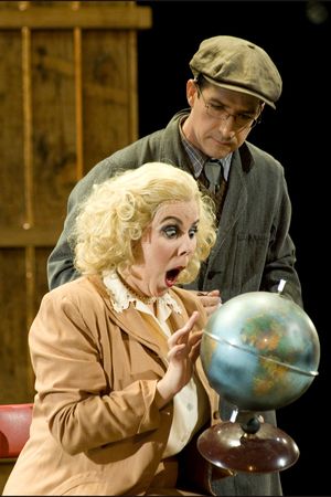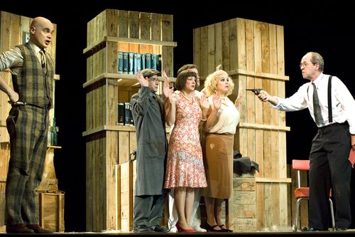 L’œuvre originale a été transposée et mise en scène dans une petite entreprise d’import-export des années 1940, avec un rythme d’action calme plutôt qu’endiablé. Chaque scène ménageait toutefois, dès l’ouverture, des effets ou actions en nombre suffisant pour animer le plateau et provoquer sourires ou éclats de rire dans l’auditoire. Qu’il s’agisse du père, du jeune couple de bonne famille, de la secrétaire adepte de films américains, du petit employé marxiste ou de l’extravagant canadien, chaque personnage était drôle et possédait sa propre individualité. Cette personnalisation des rôles a été facilitée par les tempos modérés, aux antipodes du Rossini trépidant que l’on entend souvent, ainsi que par la présence de dialogues parlés en français, adaptations libres des récitatifs italiens. Ce choix judicieux a permis une immersion dans l’œuvre, une communication plus directe avec le public et des clins d’œil à la comédie musicale. La dimension théâtrale, avec ses jeux scéniques, a été accentuée, et les chanteurs se sont révélés des comédiens aussi talentueux que facétieux.