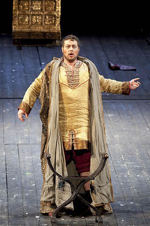 A ses côtés, le contraste est grand avec Varlaam, autre personnage clé de cet opéra. Laissé à l'explosif basse russe Vladimir Matorin (qui incarne le rôle-titre en alternance avec Orlin Anastassov), son indéniable aisance scénique, son emballement vocal l'amène vers une démesure rendant impossible sa canalisation musicale dans la rigueur de la partition et du chef d'orchestre. Malgré l'artiste total qu'il est et le talent avec lequel il dévoile la truculence de ce moine ivrogne, ses dangereux décalages avec l'orchestre sont autrement plus dérangeants à l'auditeur que sa théâtralité est bienvenue.