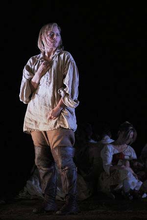 L'omniprésence des prisonniers au premier acte retire ainsi son impact à leur sortie, malgré un bel effet de lumière. De même, comment expliquer que Leonore, poignardée par Pizzaro, se relève pour assurer à pleine voix la fin de la représentation ? Dans ces moments, le texte contredit l'image, et le message se dilue. C'est d'autant plus dommage qu'en d'autres occasions le traitement du thème de l'oppression fait mouche, et que la lecture par une voix enregistrée d'extraits du Journal de Leonore de Maud Lescoffit offre d'intéressants éclairages sur la psychologie de l'héroïne.