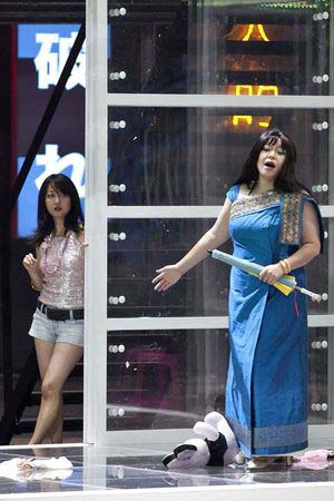 Quand au lever de rideau, une voiture arrive aux abords d'une place encombrée de petits commerces de fast food, de néons et d'affiches publicitaires, on perçoit quelques mouvements d'humeur d'un public déconcerté par l'image aussi éloignée de celle de la Madama Butterfly de nos parents.