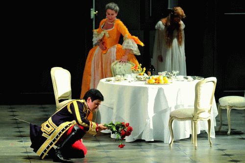 Il suffit d'observer le rideau de scène baissé pendant que l'orchestre joue l'ouverture à la française pour être averti de ce que l'on va entendre : des fêtes galantes, peintes à la manière de Watteau ou de Lancret, laissent présager des histoires d'amour légères et cruelles teintées subtilement de mélancolie.