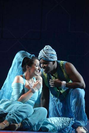 Dans cet Enlèvement au Sérail à l'envers où l'Italienne Isabella vient libérer Lindoro, prisonnier du bey d'Alger, Rossini peut développer tout l'attirail des musiques dont il a le secret. Bien que moins populaire que Le Barbier de Séville, cette comédie sans prétention politique, offre néanmoins une palette d'airs extraordinaire d'agilité comme de splendide lyrisme. Dans son travail de directeur de plateau, l'espagnol Emilio Sagi s'est entouré du goût des choses. D'abord d'un décor qui, tout en étant peint de couleurs allant du rouge Ferrari au bleu électrique, reste efficace. Les costumes, tout aussi pétants de couleurs sont superbement dessinés. Fort de cet entourage coloré, Emilio Sagi projette ses acteurs dans un théâtre burlesque sans jamais oublier les exigences particulières du métier de chanteur. Ainsi, pas de courses effrénées, pas d'escalades excitées, mais au contraire une certaine immobilité laissant à l'expression vocale le temps d'exprimer la superbe musique de Rossini. Une immobilité relative qu'il se croit parfois obliger d'habiller de légers parasitages scéniques qui détournent le spectateur du chant des protagonistes. Ainsi, au premier acte, le duo de Taddeo et d'Isabella échappe à la subtilité du chant à cause de ces serviteurs interminablement occupés à monter un plancher tel un puzzle.