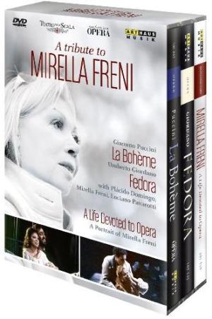 Le premier DVD est en effet essentiellement consacré aux activités de pédagogue de la cantatrice, aujourd'hui retirée dans sa ville natale de Modène où elle passe une grande partie de son temps à enseigner dans l'école de chant qu'elle a contribué à créer, au cœur même de l'hôpital où elle vit le jour… Si le film projette une personnalité on ne peut plus sympathique et attachante, tout à fait étonnante dans sa simplicité, on aurait souhaité en savoir un peu plus sur les différentes étapes de la carrière, en tout point exemplaire, de la diva. Il est d'ailleurs étonnant, pour une chanteuse qui, en raison de son ravissant physique, a de tout temps été gâtée par la caméra, que ce documentaire soit si pauvre en images d'archive : même les nombreux films réalisés par Karajan – Carmen, La bohème, Otello, sans compter Les Noces de Figaro de Böhm et Ponnelle – auraient permis de se faire une idée de l'évolution artistique de la diva. On se reportera donc, pour l'entendre et la voir jouer, sur les deux captations d'opéras intégraux qui complètent le reportage.