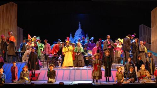 La coproduction qui nous occupe liait la maison liégeoise, l'opéra de Monte-Carlo actuellement dirigé par Jean-Louis Grinda et l'opéra de Saint Etienne dont l'ancien directeur général Jean-Louis Pichon signait la mise en scène de ce spectacle. Avec le décorateur Alexandre Heyraud, il a imaginé un décor unique situant l'ensemble de l'intrigue sur les toits de Paris. Assez statique, la mise en scène fonctionne néanmoins assez bien dans ce dispositif sobrement animé par les lumières de Michel Theuil.