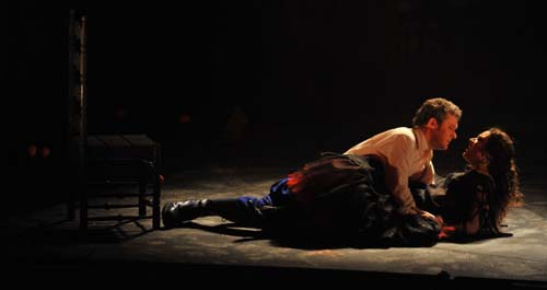 Le fil conducteur de la mise en scène tâche néanmoins de mettre l'accent sur la relation complexe, nouée et tendue entre Carmen et José, reléguant au second plan les autres personnages de l'histoire. Escamillo, interprété sans grand éclat par le baryton sud-coréen Chang Han Lim, est ainsi montré comme un fat sans véritable consistance, et la Micaëla dénuée de charme de Claudia Galli apparaît comme une manipulatrice fort peu sympathique. Si José manifeste à l'égard de sa promise la plus grande indifférence, comme le montre par exemple sa lecture de la lettre pendant le duo du premier acte, Carmen fait elle aussi preuve de bien peu d'empressement aux troisième et quatrième actes à l'égard de «son nouvel amant».