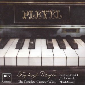 Dans le cadre des commémorations Chopin 2010, les artistes polonais Bartek Nizioł (violon), Jan Kalinowski (violoncelle) et Marck Szlezer (piano) ont enregistré une intégrale de la musique de chambre de leur génial compatriote. Un répertoire peu joué que l'on prend plaisir à (re)découvrir ici, grâce notamment au piano Pleyel de 1845 utilisé pour la circonstance.