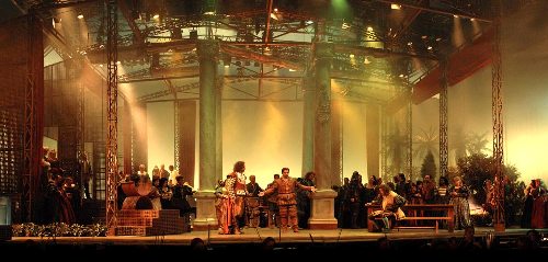 Musicalement, la soirée fut plus intéressante. Armiliato emporte un vif succès grâce son tempérament fougueux et une puissance vocale idéalement canalisée par le chanteur sur toute la durée de l'œuvre. Si l'Esultate est plein de maîtrise et de vigueur, le chanteur sait se montrer musical et touchant. Daniella Dessi offre une prestation honorable mais musicalement moins riche que ce qu'elle pouvait laisser présager. L'instrument vocal nous a semblé assez serré ce soir et par instants encombré par un vibrato trop présent. Le couple Armiliato-Dessi réserve tout de même de très beaux instants lors de ses duos, dont le final de l'acte I, pour lequel le Maestro Arrivabeni avait particulièrement soigné l'accompagnement orchestral. Le reste de la distribution est dominé par Giovanni Meoni. Le baryton qui vient de faire ses débuts au Metropolitan de New York dans le rôle d'Ezio ( Attila) campe un idéal Iago caractérisé par une profondeur du chant et une grande finesse dans le jeu d'acteur. Ces qualités lui ont apporté de chaleureux applaudissements au terme du spectacle. Cristiano Cremonini a suscité le même enthousiasme pour son interprétation de Cassio. Nous pouvons difficilement juger de la qualité du travail de Paolo Arrivabeni à la tête de l'orchestre liégeois. L'orchestre et le plateau étaient en effet amplifiés. Nous n'avons toujours pas trouvé de potentielle justification à un tel choix. Une salle qui jauge mille fauteuils n'exige en effet aucune amplification pour la bonne exécution de spectacles lyriques. Tout au plus, au delà d'effets spectaculaires gratuits lors des tutti orchestraux, le public a-t-il pu savourer à plein volume les tournes de pages des musiciens et a sans nul doute été bien agacé par le chœur Dove guardi splendono transformé par l'ingénieur du son en un absurde concerto pour mandoline.