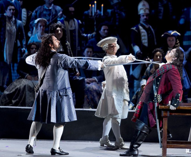 Le décor planté, les costumes dessinés, il ne resterait plus qu'à ce que chacun des protagonistes exprime ses convictions politiques, sentimentales et amoureuses pour qu'on assiste à un véritable théâtre d'émotion. Si c'est ce que dit le livret, et ce que la mise en scène de Graham Vick suggère si habilement, rares sont les protagonistes qui s'engagent pleinement dans l'esprit de ce qu'il vivent pendant ces presque deux heures de spectacle. Certes, Fabio Maria Capitanucci (Enrico Ashton) s'investit admirablement dans l'aventure, en faisant le dominateur du plateau grâce à une voix superbe et un jeu d'acteur subtil et efficace. A ses côtés, Francesco Meli (Edgardo) est tout aussi convaincant dans cet emploi de soupirant éperdu. La voix puissante et vaillante du ténor italien sert magnifiquement cette partition. Après l'ouverture du second acte, sans l'idée d'insérer la scène souvent supprimée de l'orage, la représentation aurait été privée du plus beau moment de bel canto avec le duo entre Enrico Ashton (Fabio Maria Capitanucci) et Edgardo (Francesco Meli), instant privilégié entre les deux meilleurs protagonistes de cette distribution.