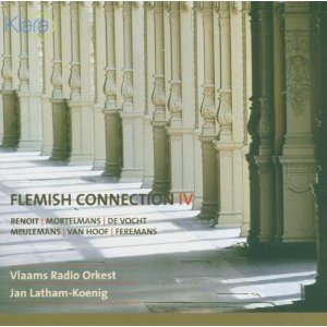 Flemish Connection IV. Peter Benoit (1834-1901) : Ouverture pour Charlotte Corday ; Entr’acte et Valse de Charlotte Corday ; Conte en fa majeur (Orchestration de Mortelmans). Lodewijk Mortelmans (1868-1952) : Diptyque évangélique (Epiphanie ; Procession solennelle de Gethsemani) ; Lodewijk de Vocht (1887-1977) : En Exile, poème symphonique ; Vers plus de lumière, poème symphonique avec violoncelle solo ; Arthur Meulemans (1894-1966) : Evasions ; Jef van Hoof (1886-1959) : Interlude symphonique pour une fête ; Gaston Feremans (1907-1964) : Praeludium & Fughetta pour Le Cœur de bronze. Vlaams Radio Orkest (Orchestre de la Radio flamande), dir. Jan Latham-Koenig ; Luc Tooten, violoncelle. 1 CD Etcetera. Réf. : KTC 4002, code barre : 5 425008 372013. Enregistré salle Eden, Louvain, en décembre 2003 et mars 2004. DDD. Notice quadrilingue : flamand, français, anglais, allemand. Durée : 70’10