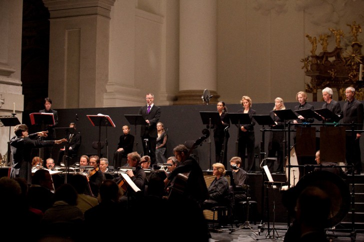 Cette exceptionnelle puissance dramatique fait qu'on ne regrette presque pas ici l'absence d'une mise en scène, que l'opéra mériterait pourtant pleinement. L'acoustique de la Kollegienkirche, corrigée par de grands voiles transparents suspendus dans les voûtes de la nef et du chœur, confirme en tout cas ses affinités avec la musique de Sciarrino, avec juste ce qu'il faut d'écho pour en faire vibrer les couleurs. L'ensemble de l'équipe réunie par Markus Hinterhäuser est composée de musiciens familiers avec la musique de Sciarrino, dont les deux chanteurs du couple central, qu'on avait pu entendre à Paris chanter Da gelo a gelo, dans l'espace ingrat et trop vaste de l'Opéra-Garnier qui avait mis en péril les équilibres subtils de cette musique ; ils sont ici parfaitement en situation, avec un des meilleurs ensembles germaniques pour la musique contemporaine : comme l'Ensemble Intercontemporain, Klangforum est un ensemble de solistes plus qu'un orchestre aux musiciens anonymes, et on serait bien en peine de mettre en avant l'un ou l'autre pupitre devant leur remarquable engagement pour une musique qui n'a aucune raison de rester enfermée dans les ghettos de la musique contemporaine.