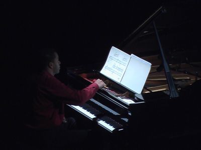 La deuxième soirée invitait Les Temps Modernes, un ensemble lyonnais défendant la musique d'aujourd'hui depuis bientôt 20 ans ; à sa tête, Fabrice Pierre – dont on connait la double casquette de harpiste et de chef – dirigeait un programme dense autant que cohérent qui incluait une création mondiale. Deux pièces de Tristan Murail, conçues pour la même formation dite « Pierrot Lunaire » (flûte, clarinette, violon, violoncelle et piano) nous immergeaient dans un temps très lent mais toujours en devenir, où la matière sonore vivante et vibrante fait valoir le dégradé subtil de ses couleurs. Treize couleurs du soleil couchant (1978) joue sur la mutation progressive des complexes sonores comme une méditation en mouvement communiquant la sensation du fragile et de l'éphémère. La barque mystique – dont le titre est emprunté à la toile éponyme d'Odilon Redon – est tout aussi captivante et mystérieuse sous la conduite très sûre de Fabrice Pierre et la fluidité du « piano-résonance » de Wilhem Latchoumia. Après Hysos pour flûte et percussions de Giacinto Scelsi – hommage au premier « explorateur du son » – Les Temps Modernes donnaient L'Harmonie des Sphères d'Allain Gaussin, une pièce saisissante par la trajectoire qu'elle décrit dans l'espace selon un processus de déploiement d'une matière sonore quasi minérale. La facture experte jouant sur l'alchimie des timbres et les fluctuations du temps maintient l'écoute captive jusqu'aux mouvements vibrillonnants des dernières mesures où l'auditeur doit se sentir « happé comme dans un trou noir ». Il était aussi question de temps, appréhendé selon ses diverses qualités, dans la création de Jean-Luc Hervé En mouvement. Ludique, inventive et d'une énergie galvanisante que font circuler les six interprètes très investis, la musique du compositeur nous invitait à un voyage en tapis volant variant sa vitesse de croisière et perturbé par quelques « trous d'air » mêlant à l'humour l'effet du saisissement.