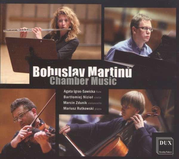 Bohuslav Martinů (1890-1959) : Sonate pour flûte, violon et piano H. 254, Sonate pour flûte et piano H. 306, Madrigal pour flûte, violon et piano H. 291, Trio pour flûte, violoncelle et piano H.300. Agata Igras-Sawicka (flûte), Bartek Niziol (violon), Marcin Zdunik (violoncelle), Mariusz Rutowski (piano). 1 CD DUX. Référence DUX 0768. Code barre : 5902547007687. Enregistré au Studio Witold Lutosławski de la Radio Polonaise en janvier, mars et août 2010. DDD. Notice bilingue (polonais, anglais). Durée : 62’16’’
