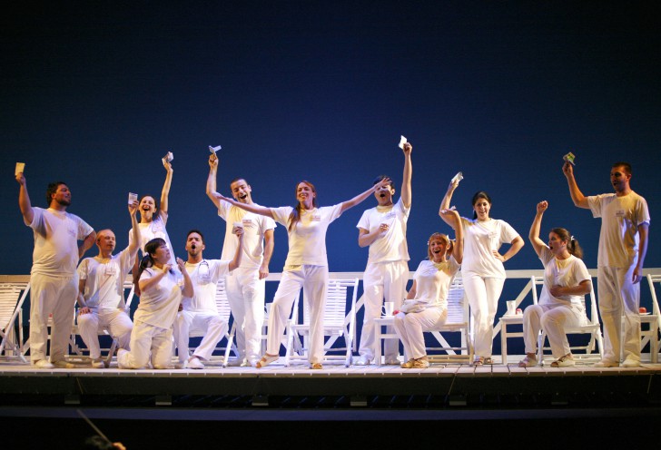 C'est chaque année dans la même mise en scène élégante et distanciée d'Emilio Sagi que le Voyage à Reims sert d'écrin aux meilleurs élèves de l'Académie rossinienne. Cette année il a révélé quelques chanteurs à suivre : Elena Tsallagova, une délicieuse Corinne, ou Lu Yuan, très à l'aise et drôle en Belfiore, ainsi qu'une jeune chef d'orchestre, la Chinoise Yi-Chen Lin qui dirigeait avec verve et précision l'orchestre Rossini.