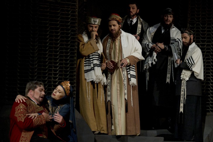 Dès le lever de rideau dévoilant un décor moyen oriental subtilement éclairé aux couleurs chaudes agréables à l'œil, nous nous sommes dit que le spectacle serait sans doute confortable à suivre, et il le fut jusqu'à son terme. La lisibilité des situations et la caractérisation des personnages, bien aidée par d'excellents costumes, furent incontestablement un des points forts de cette production, tout comme la cohérence de conception, privilégiant la légèreté et la comédie au détriment du drame et de la tension. De ce point de vue, celui de la comédie, les scènes de disputes furent assez réussies, aussi bien celles entre les juifs que les quasis scènes de ménages entre Hérode et Hérodias. On en dira pas autant des scènes de séduction comme des scènes dramatiques qui nous laissèrent un peu plus sur notre faim, d'autant que le chef et son orchestre nous semblèrent eux aussi rester sur une sage réserve. La première scène de séduction entre Salomé et Jochanaan (troisième scène de l'œuvre) nous sembla trop paisible, totalement dénuée d'ambigüité, avec un Jochanaan tantôt impassible tantôt désinvolte (jetant ses chaussures au travers du plateau). Quant à la seconde, la fameuse Danse des sept voiles, acceptée par Salomé en échange de la promesse d'Hérode de lui accorder « tout ce qu'elle voudra », elle a tout simplement disparu. A une époque où les scénographies déshabillent volontiers leurs personnages parfois un peu gratuitement, on peut trouver surprenant de nous priver du plus célèbre strip-tease de toute l'histoire de l'opéra, car sur scène il ne se passa quasiment rien (ni dans la fosse il faut bien le reconnaitre), Salomé se contentant d'esquisser quelques mouvements à la lascivité bien timide et un court pas de deux avec Hérode. Or dans cette scène clé, Salomé doit respecter son engagement en mettant la barre tellement haut qu'Hérode ne puisse plus se renier. Après ce qu'on a vu, il devrait l'envoyer promener mais surement pas s'exclamer « C'est magnifique ! Merveilleux, merveilleux ! », sans parler d'une musique cette fois ci on ne peut plus explicite. Non, cette danse ne vaut pas la tête tranchée de Jochanaan, c'est trop disproportionné pour être crédible et c'est ici à notre sens la faute majeure de cette conception. Enfin on peut rester critique sur les deux morts violentes « en direct » (rappelons que Jochanaan est décapité hors champ), car le suicide de Narraboth aurait pu être mieux préparé, et l'exécution de Salomé (simplement égorgé sans une goute de sang par un soldat) n'est pas vraiment en phase avec la musique violente et précipitée de Strauss.