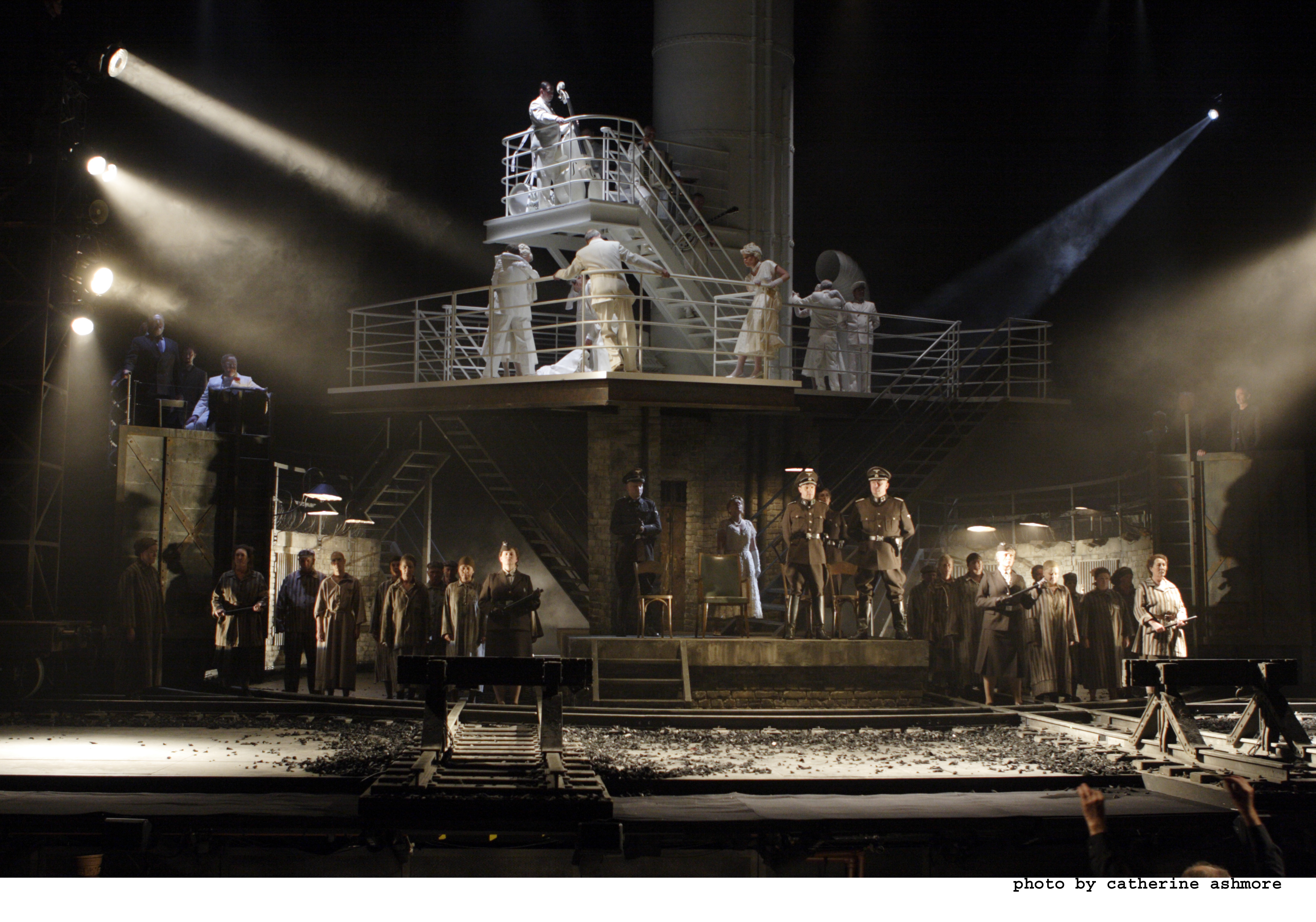 La direction de Sir Richard Armstrong est tendue, elle met en relief les qualités de l'orchestration, soutient le rythme sans brusquer la nécessaire lenteur propre à la narration. La mise en scène de David Pountney et les décors sont remarquablement efficaces, avec un jeu constant de va-et-vient entre le pont du paquebot et le sol du camp, et les allées et retours des wagons qui font tour à tour office de chambrée, de murs du camp ou d'évocation des fours crématoires.