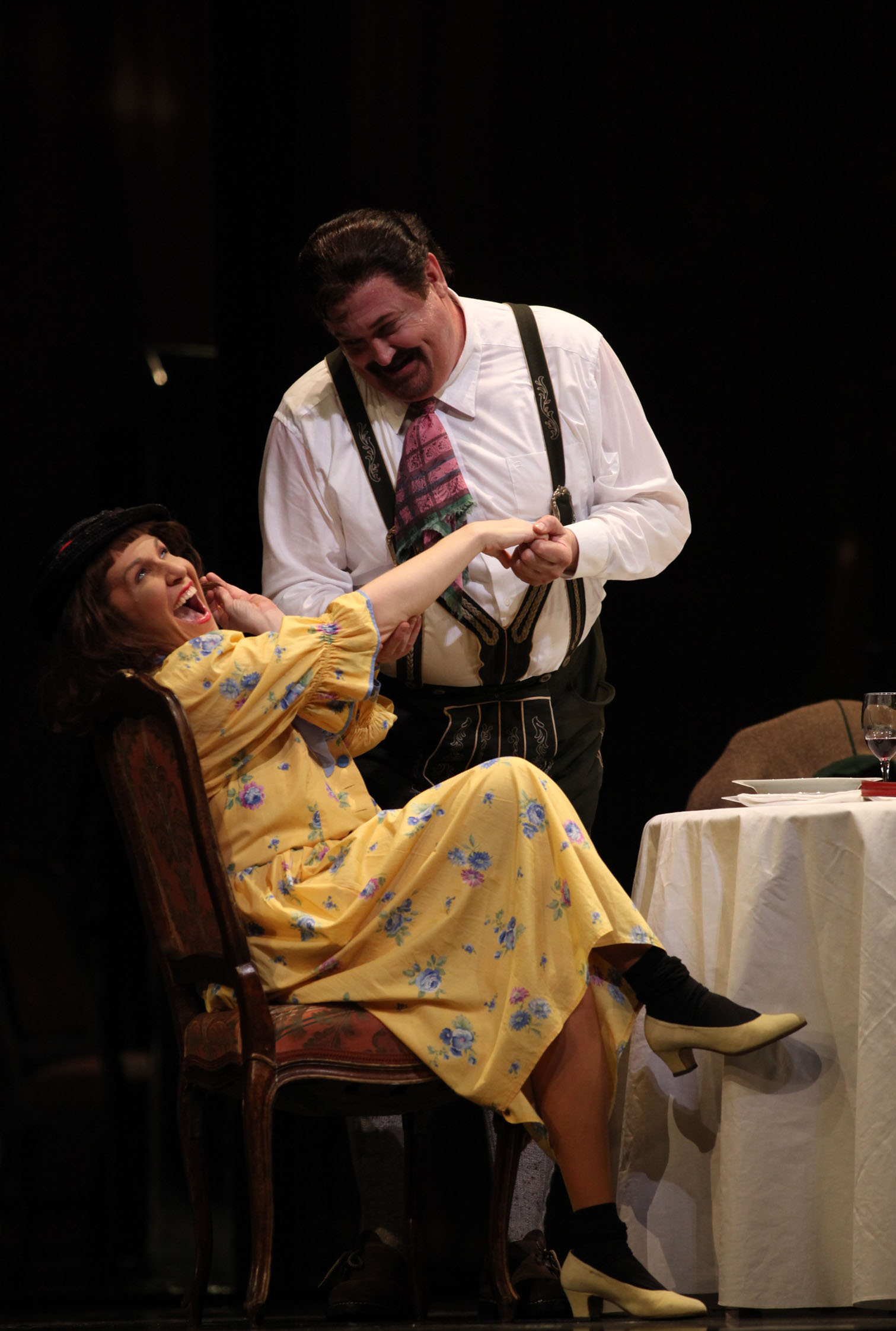 Il n'empêche 16 ans après sa création, cette scénographie est toujours exceptionnelle et exemplaire. Wernicke connaissait les moindres recoins de l'œuvre et il fait ressortir tous les détails du texte dans un travail scénique passionnant et juste. Il fait évoluer l'action sur le fil du second degré avec ce qu'il faut de comique mais sans en rajouter. La grande réussite de ce travail scénique est d'expurger l'œuvre de toute sa pompe poussiéreuse du siècle des Lumières, mais sans perdre de vue le côté crépuscule d'une époque impériale. Les personnages sont parfaitement caractérisés, avec en porte drapeau de ce monde en fin de règne, un baron Ochs méchamment autrichien de carte postale : beauf conservateur, réactionnaire, naïf et bien stupide. La riche bourgeoise autrichienne qui assista à la création de cette production a du rire bien jaune ! Le tout avance avec une rare logique dramaturgique qui donne des leçons à bon nombre de metteurs en scène actuels !