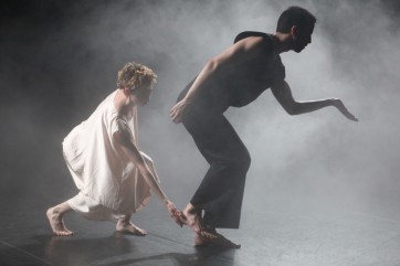 On préférera la radicalité hypnotique d'Opal Loop, une pièce de 1980, avec ses quatre corps dissemblables, contrastés, qui évoluent dans le silence absolu. Seuls les ronflements d'un dispositif placé à l'arrière scène, qui soulève des nuages de vapeur d'eau bercent les mouvements harmonieux et coulés des quatre danseurs. Un moment véritablement suspendu, une des grandes pièces de la chorégraphe américaine, assurément.