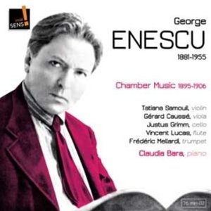 Georges Enesco (1881-1955) : Suite pour piano n°2 en ré majeur op.10 ; Impromptu concertant pour violon et piano en sol bémol majeur ; Ballade pour violon et piano op.4 ; Konzertstück pour alto et piano ; Cantabile et Presto pour flûte et piano ; Nocturne et Saltarello pour violoncelle et piano ; Pastorale, Menuet triste et Nocturne pour violon et piano à quatre main* ; Légende pour trompette et piano ; Aubade pour trio à cordes ; Sérénade lointaine, trio pour piano, violon et violoncelle ; Tarentelle pour violon et piano. Tatiana Samouil, violon ; Gérard Caussé, alto ; Justus Grimm, violoncelle ; Vincent Lucas, flûte ; Frédéric Mellardi, trompette ; Claudia Bara, piano ; *Carmen-Elena Rotaru, piano. 1 CD Indésens INDE036. Code barre : 3760039839305. Enregistré en juin 2011 à l’église évangélique Saint Marcel (Paris). Notice bilingue intéressante (français, anglais) citant ses sources, détaillée sur chaque œuvre et chaque interprète, mais à la police de caractère difficile à lire. Durée totale : 76’03