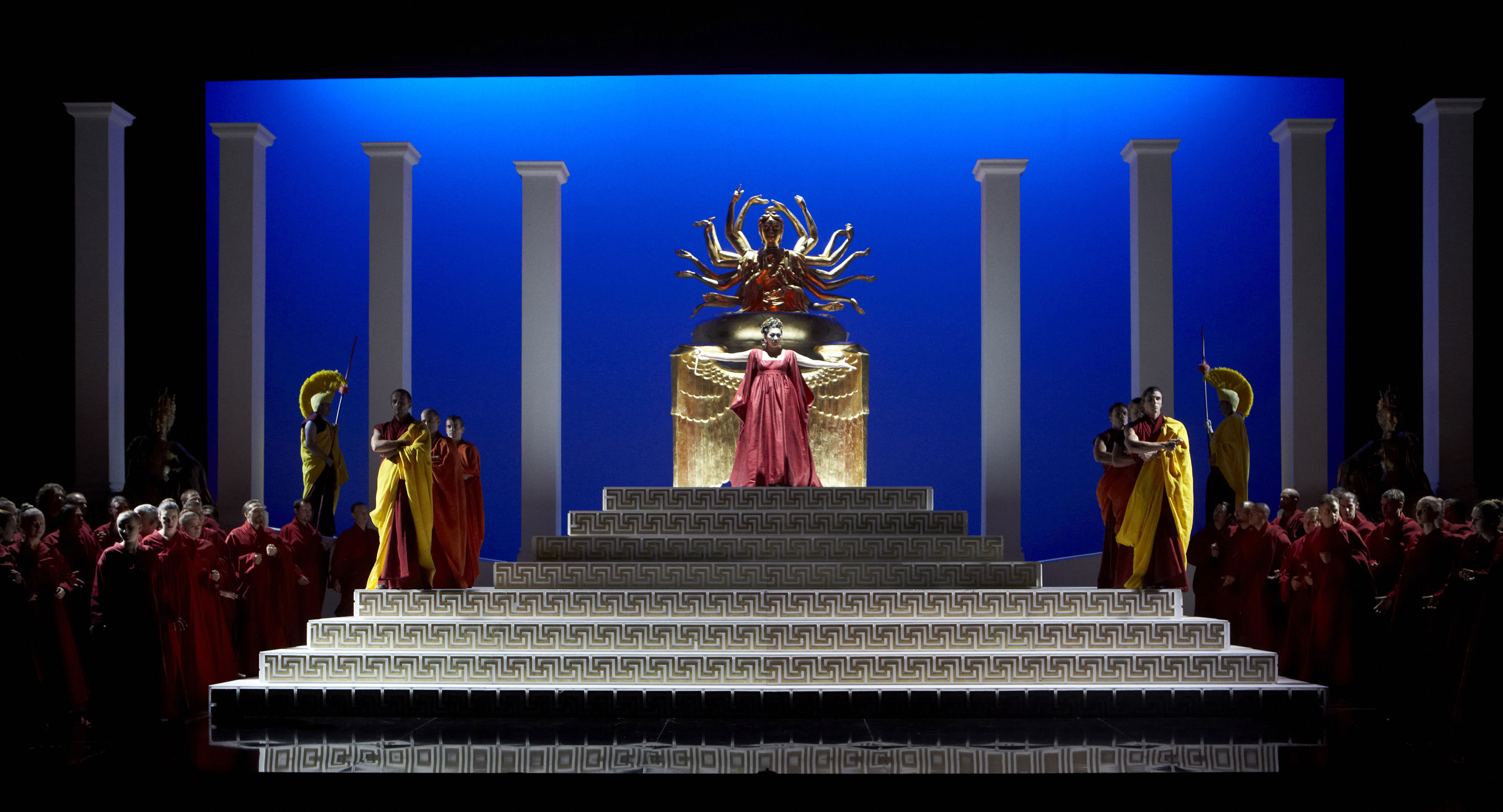 L'arrivée d'une Norma, couronnée de lauriers d'or, vêtue d'une robe d'une blancheur immaculée, ajouté aux réminiscences d'une musique familière, nous replonge alors dans l'univers bellinien de la druidesse gauloise. La musique est donc bien de Bellini, la druidesses est donc bien Norma mais que fait-elle au Tibet ? On savait qu'Iphigénie avait été en Tauride et en Aulide. Même, dans une de ses conférences, le compositeur et parodiste Peter Schickele, alias P.D.Q. Bach, affirme qu'elle a été vue à New-York, mais jamais on aurait pensé que Norma avait visité le Tibet.