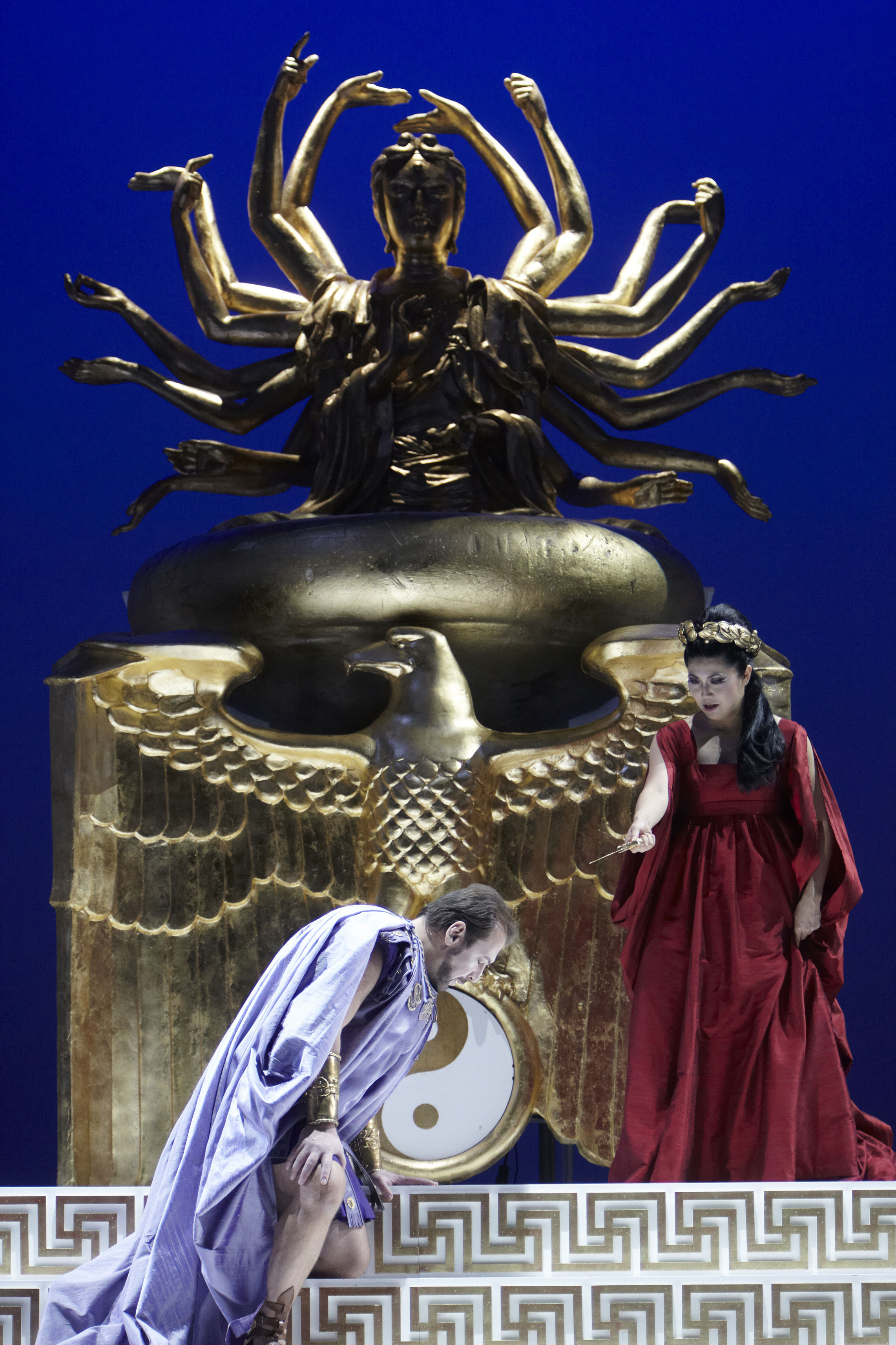 C'est pourtant là que Massimo Gasparon décide d'implanter son action. Dans une introduction fumeuse d'une dizaine de lignes du programme de la soirée, le metteur en scène tente de convaincre son lecteur du parallélisme existant entre les populations gallo-celtiques et l'univers tibétain. Quand bien même son propos pourrait intellectuellement se défendre, celui de l'opéra de Bellini n'est pas l'oppression des peuples mais bien le drame humain d'une femme parjure, prête à tuer ses enfants, à se tuer elle-même pour ne pas avouer sa faute et garder l'amour coupable de cet homme, père de ses enfants, épris d'une plus jeune femme. Ce drame humain et universel ne semble jamais avoir effleuré le metteur en scène italien.