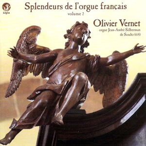 Louis Couperin (1626-1661) : Prélude n° 46. Nicolas-Antoine Lebègue (1631-1702) : Elévation en fa pour la voix humaine. Louis Marchand (1669-1732) : Grand dialogue en ut majeur. Gilles Jullien (1650-1703) : Cromorne en taille du premier ton. Jean-Philippe Rameau (1683-1764) : Chaconne, Menuets 1 et 2, Danses des sauvages, extraits des Indes galantes. Louis-Claude Daquin (1694-1772) : Noël n° 11 en récit en taille et en duo. Jean-François Dandrieu (1682-1788) : Offertoire en ré mineur. Michel Corrette (1707-1788) : Magnificat en Mi la 3# ; Les pantins ; Offertoire « l’éclatante ». Claude-Bénigne Balbastre (1724-1799) : Ariette et pastorale ; Canonnade. Olivier Vernet et Cédric Meckler (à 4 mains pour les pièces de Rameau) à l’orgue Jean-André Silbermann (1750) / Richard Dott (2011) de l’église Saint-Maurice de Soultz (68). 1 CD Ligia Lidi 0104232-11. Code barre 3487549902328. Enregistré en mai 2011. Livret bilingue français/anglais. Durée totale 65’39’’