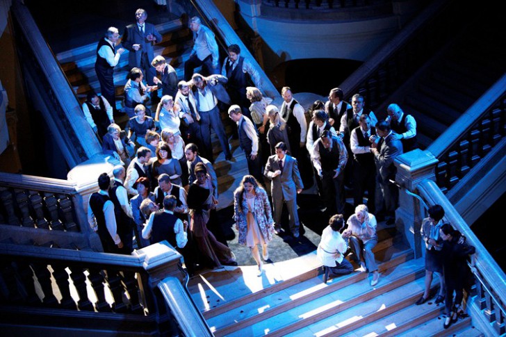 Voilà donc un décor naturel des plus impressionnants comme aucun décorateur ne saurait en imaginer qui offre, en plus, mille et une possibilités au metteur en scène. Et Uwe Eric Laufenberg sait profiter de l'occasion pour nous offrir une direction d'acteur fouillée et prenante. Solistes et chœur se retrouvent tantôt en haut tantôt en bas, le contact avec le chef étant assuré par des écrans fixés à maints endroits. Cette opera seria tardif n'a donc plus rien de statique, les élégants costumes contemporains lui conférant un aspect moderne tout à fait bienvenu. Et le public – dispersé sur différentes « tribunes » à tous les niveaux du grand escalier – se retrouve en quelque sorte au milieu de l'action.