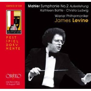 Avec un grand sauf dans le temps, les mélomanes retrouvent, en 1989, James Levine, pour la Symphonie n°2 de Mahler. Le hasard des parutions est tout de même étrange. En effet, Levine avait gravé, pour RCA, un bel ensemble de Symphonies de Mahler, mais il y manquait cette Symphonie n°2. Sans réelle coordination, l'année 2011 voit la publication de 2 lectures de cette œuvre par Levine, captées en concert, avec : la philharmonie d'Israël et avec la philharmonie de Vienne, pour cette édition Orfeo. On tient une belle lecture de concert où le chef prend son temps d'installer les climats. Le premier mouvement est séduisant de noblesse viennoise et même de classicisme avec un orchestre d'une grande élégance et d'un fondu parfait entre les pupitres. Levine se plait à jouer de l'orchestre et à souligner, au fil des mouvements, la beauté des pupitres d'un orchestre qu'il connaît par cœur ! Le dernier mouvement est construit avec un rare sens de l'évidence par un chef qui maîtrise son métier et respecte les musiciens. Les forces vocales et chorales (Kathleen Battle et Christia Ludwig et le chœur de l'opéra de Vienne) se fondent dans ce fleuve musical de haut niveau auquel, il manque sans doute une flamme irrésistible et une rage de vaincre.