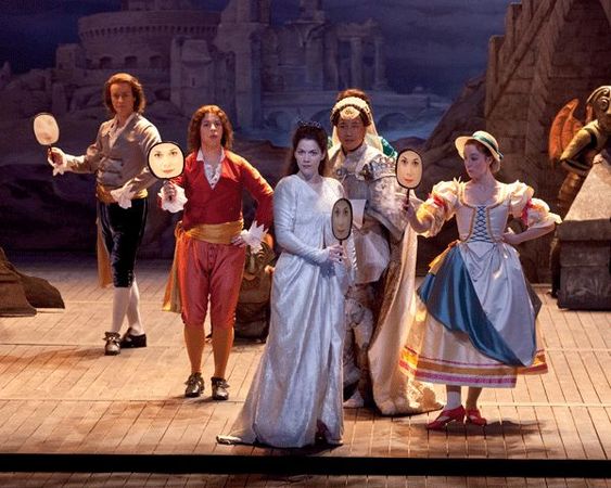 Marcel Bozonnet a affronté une contrainte : son dispositif scénographique devait être fait de décors « plantés » (aux ères baroque et classique, ils reconstituaient l'illusion de la perspective) afin d'enrichir la collection que, production après production, rassemblent le Centre de musique baroque de Versailles et l'Opéra royal au Château de Versailles. Grâce au travail d'Antoine Fontaine, de nécessité il a fait intelligente vertu. Aux costumes, que Renato Bianchi a particulièrement réussis, a été confiée la mission d'établir les différentes strates temporelles – le temps de Lully, l'an 1779 et l'époque de la chevalerie – que porte ce spectacle. Sans jamais être spectaculaire, la direction d'acteurs est précise et aide à la finesse interprétative qui prévaut dans cette mise en scène. Indiscutablement, Marcel Bozonnet appartient à cette famille de metteurs en scène (l'accompagnent des figures telles que Laurent Fréchuret ou Christian Schiaretti) qui ont, chevillée au corps, l'éthique du théâtre de service public.