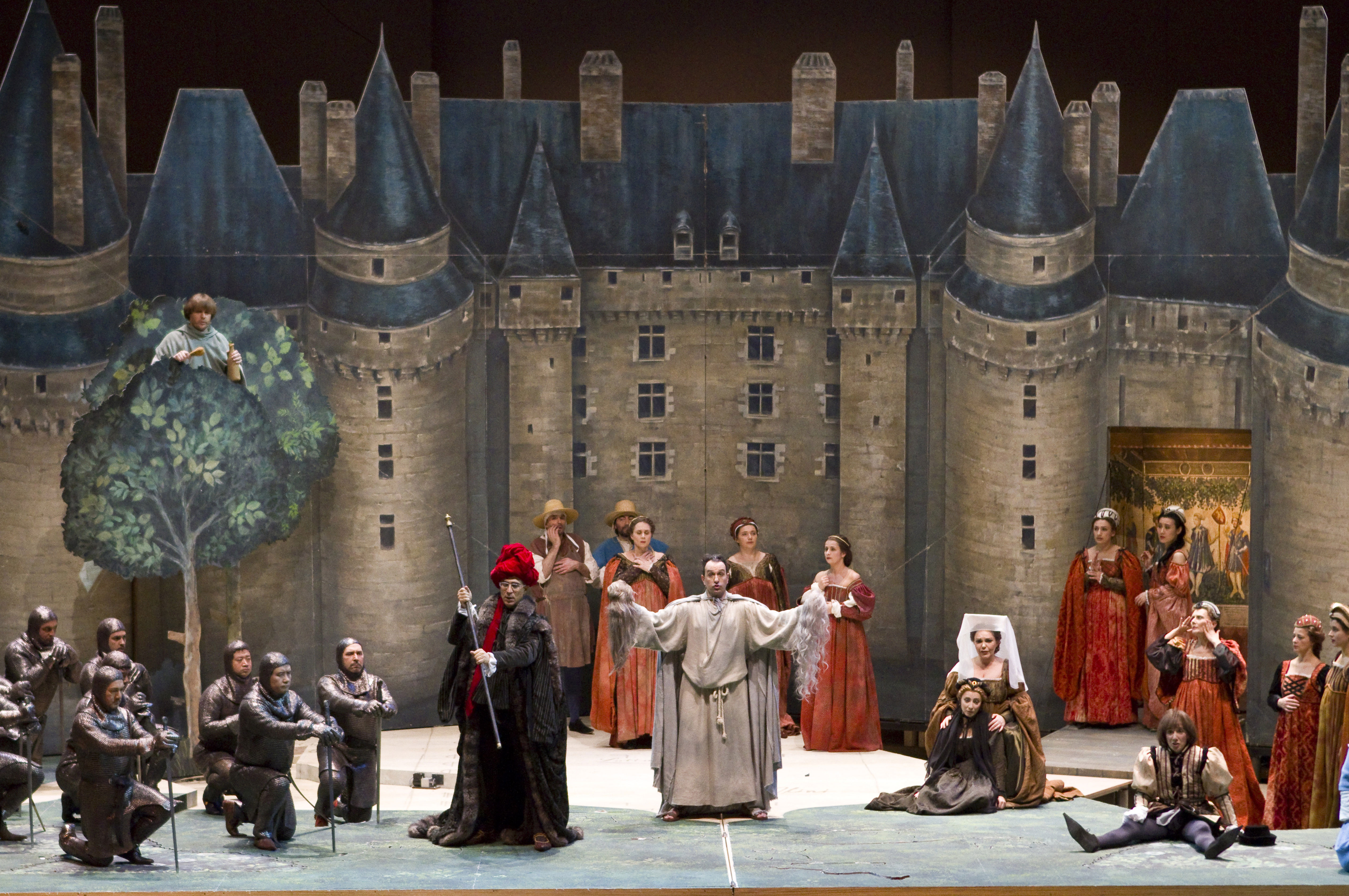 Mais, tant pis, le décor duquel on extrait les figurines d'un coq, de quelques poules, d'un mouton, et d'une vache est attrayant. Arrivent les gens du village (magnifique Chœur du Grand Théâtre) entourant tapageusement le moine Raimbaud (Jean-François Lapointe). Tout ça bouge, s'agite, s'excite. On se prend à imaginer de folles envolées tant scéniques que vocales. Hélas, le soufflé retombe bien vite.