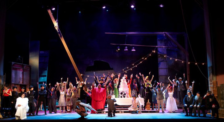 L'intention d'Omar Porras était de montrer l'intrigue dans un théâtre détruit par la guerre et dont les quelques vestiges auraient servi à chacun à se changer en comédien pour créer une mise en abîme de l'opéra-bouffe d'Offenbach. Si le décor (Amélie Kiritzé-Topor) est bien en phase avec l'intention du metteur en scène, c'est ce dernier qui s'éloigne de son idée première. Ainsi, le décor aurait pu être tout autre sans que les scènes en aient été autrement bouleversées.