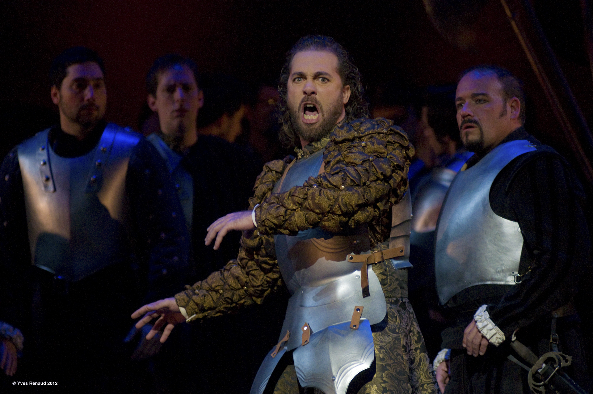 Montréal. Opéra de Montréal. 21-01-2012. Giuseppe Verdi (1813-1901) : Il Trovatore, opéra en quatre parties sur un livret de Salvatore Cammarano et Leone Bardare, d’après El Trovador d’Antonio Garcia Gutierrez. Mise en scène : Oriol Tomas. Décors & Costumes : Opéra de Montréal. Éclairages : Anne-Catherine Simard-Deraspe. Chorégraphe : Lucie Vigneault. Avec : Hiromi Omura, Leonora ; Dongwon Shin, Manrico ; Gregory Dahl, Le Comte de Luna ; Laura Brioli, Azucena ; Ernesto Morillo, Ferrando ; Karine Boucher, Inez ; Riccardo Iannello, Ruiz ; Jean-Michel Richer, Un Gitan ; Gaétan Sauvageau, Un Messager. Chœur de l’Opéra de Montréal. Chef de chœur : Claude Webster. Pianiste-répétitrice : Marie-Ève Scarfone. Orchestre symphonique de Montréal. Direction : Francesco Maria Colombo