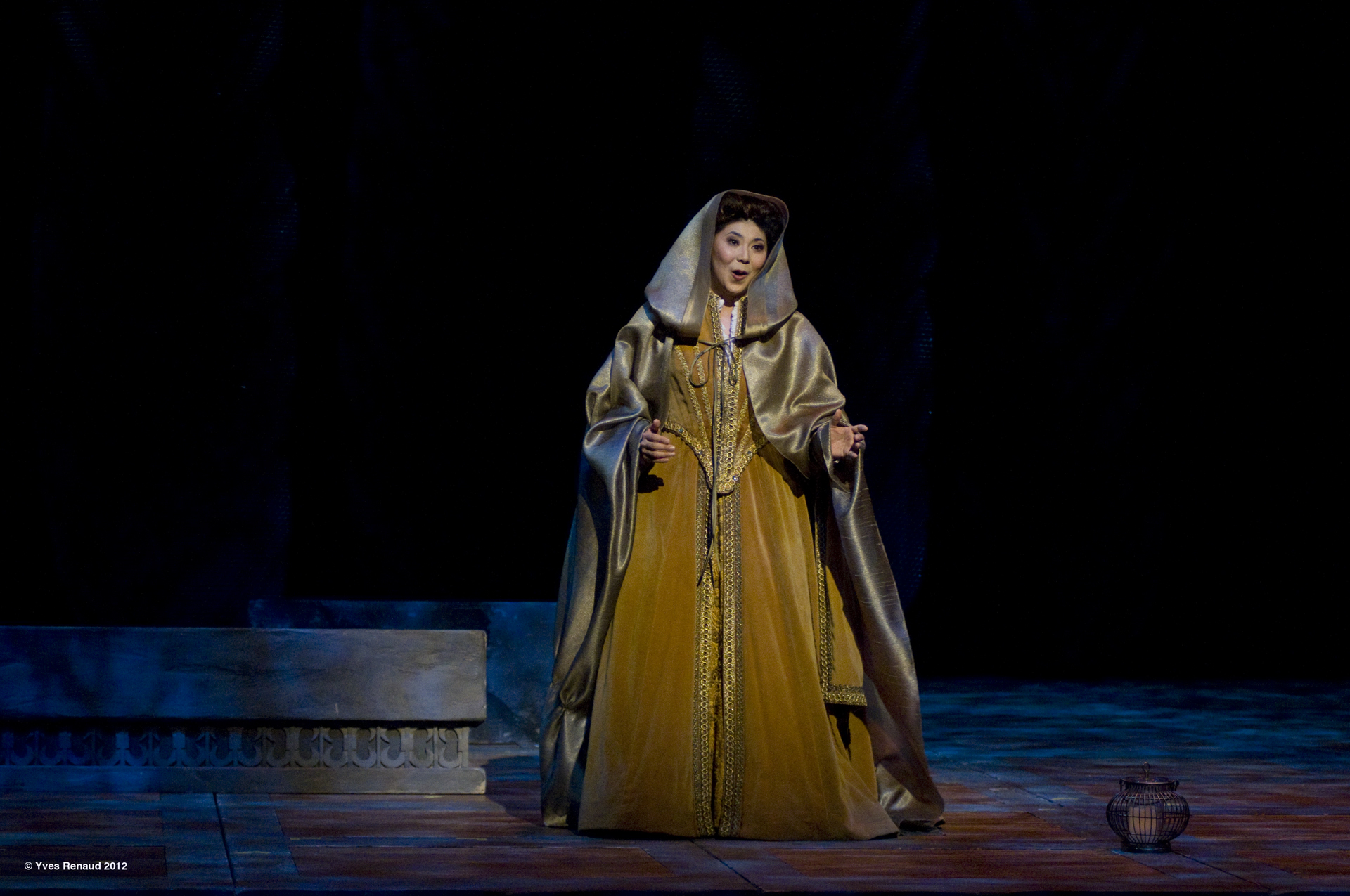 ne déçoit pas. Il serait tentant de mesurer sa Leonora à l'aune de Cio-Cio San, incarnation incandescente dans Butterfly avec l'Opéra de Montréal il y a quelques années. Les aigus sont parfois tendus voire laborieux, mais la soprano nippone tire son épingle du jeu en proposant une Leonora fort crédible et fragile. Certes, le rôle de Leonora requiert des qualités autres. Et si dans Tacea la notte, la voix se fait légère, un peu en retrait et sans grande virtuosité, le Di Tale amor nous convaincra de la justesse de son jeu et de la passion qui l'anime. La flamboyante Azucena, de la mezzo-soprano , est une ensorcelante gitane de feu et de sang. Voix impressionnante dans le Stride la vampa, malgré une tendance à poitriner mais capable d'émouvoir dans le Giornipoveri vivea.