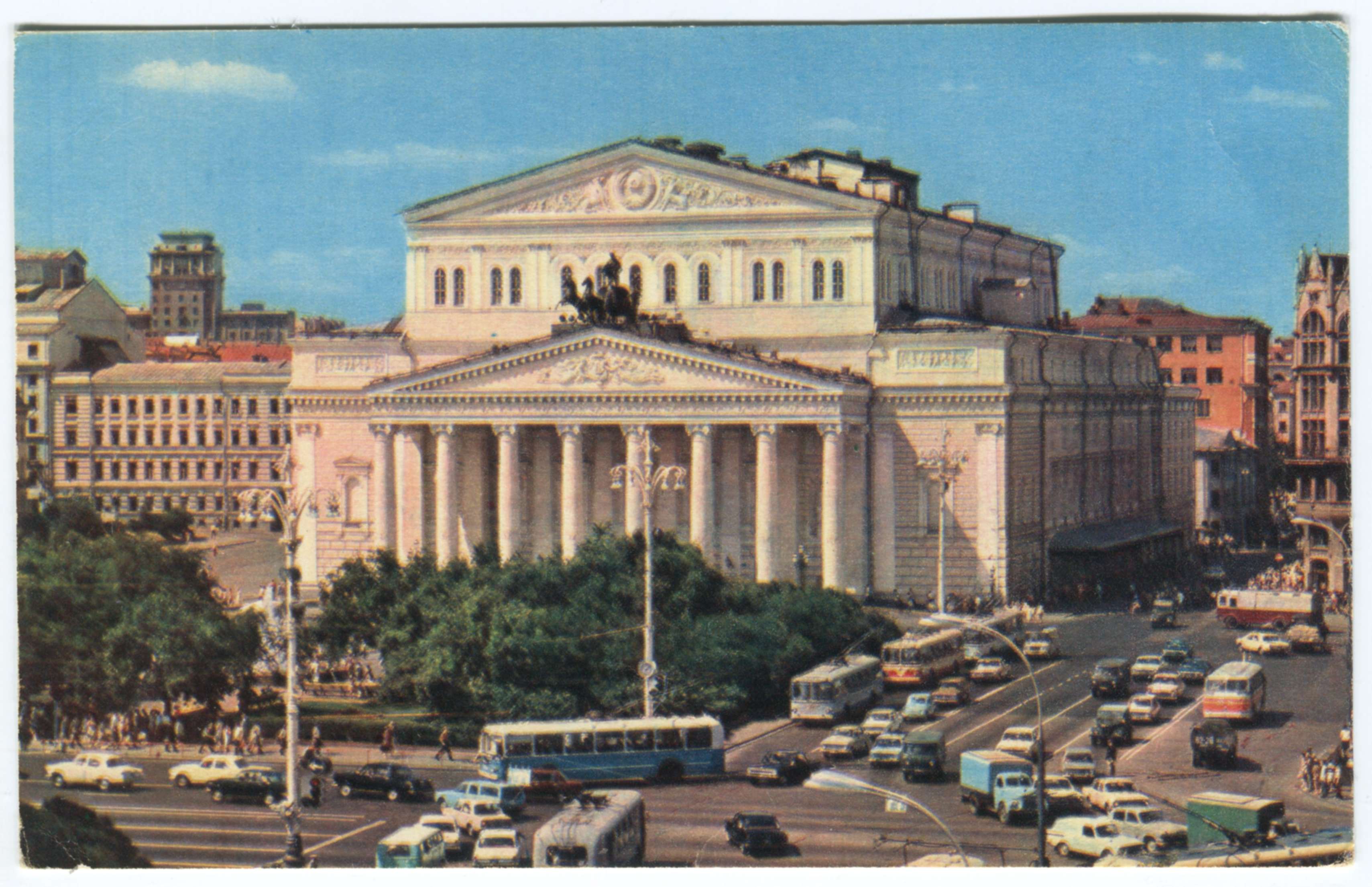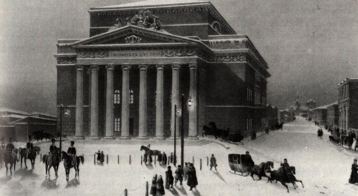 En 1818, un concours est lancé afin d'établir un nouveau théâtre. Il est remporté par Andrei Mikhailov, professeur à l'Académie des Arts. Cependant, son projet est trop cher et le gouverneur de Moscou désigne l'architecte Joseph Bové pour modifier les plans et tirer les coûts vers le bas. Les travaux commencent en 1820. Le bâtiment fait grande impression avec sa façade massive décorée par un portique à colonnes surmontées d'un fronton où se dresse un grand groupe sculptural.