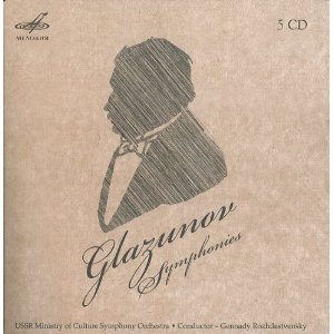 Alexandre Glazounov (1865-1936) : Intégrale des Symphonies. Orchestre symphonique du ministère de la culture d'URSS, direction : Guennadi Rojdestvensky. 1 coffret de 5 CD Melodiya. Référence MEL 10 01 790. Enregistré entre 1983 et 1985. Notice de présentation en : russe et anglais. Durée : 323'34