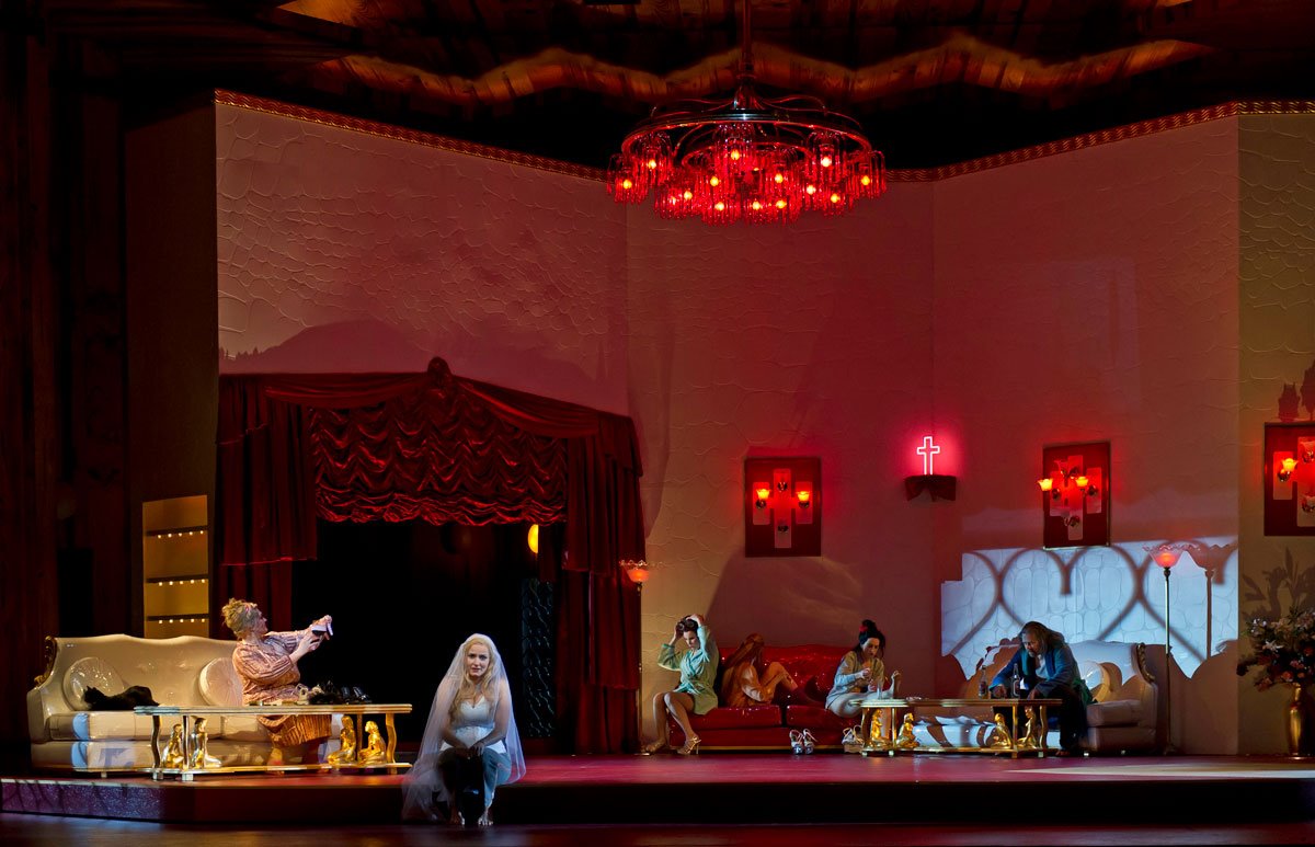 Leur Rusalka n'ignore rien des troubles freudiens de l'adolescence, vue comme rencontre entre plusieurs mondes, avec les peurs et les souffrances que cela suppose. Mais ce n'est pas la seule piste suivie par cet admirable spectacle aussi polysémique que l'œuvre elle-même – il suffit de constater les transformations du chat en peluche que Rusalka serre dans ses bras au début de l'opéra : lui qui apportait à l'enfant en devenir une illusoire sécurité parvient à taille humaine chez la sorcière pour laquelle il exécute de terrifiants rites de passage, avant de se transformer au 3e acte en un inoffensif matou, qui est comme l'incarnation de l'échec de la vie rêvée de Rusalka, comme l'âme insaisissable à laquelle elle a cessé d'aspirer. Pour comprendre ces aspirations, Wieler et Morabito se sont aussi intéressé au monde qui l'entoure : à l'attente, à l'ennui, à l'incapacité de communiquer qui ne concerne pas seulement Rusalka, muette pendant l'essentiel de l'acte II, mais aussi ceux qui assistent, impuissants, au naufrage de ses rêves. Les décors de Barbara Ehnes, avec leur vulgarité assumée, dans leur virtuose simplicité, expriment à merveille toute la palette de cette difficulté de vivre avec ses propres désirs et avec ses pareils qui fait toute la force dramatique de l'œuvre. On rêve d'une reprise qui serait enfin accompagnée de la captation que ce spectacle unique mérite plus que bien d'autres.