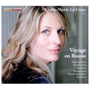 Nikolaï Rimski-Korsakov (1844-1908) : Vol du bourdon (arr. Rachmaninov) ; Alexandre Scriabine (1871-1915) : Prélude en ut dièse mineur op. 9 n°1 pour la main gauche, Prélude en mi majeur op. 15 n°4, Etude en ut dièse mineur op. 2 n°1, Etude en ré dièse op. 8 n°12, Mazurka en ré dièse mineur op. 3 n°5, Prélude en mi bémol mineur op. 16 n°4, Vers la famme op. 72 ; Sergueï Rachmaninov (1873-1843) : Etude-tableau en mi bémol mineur op. 39 n°5, Daisies op. 38 n°3, Prélude en ut dièse mineur op. 3 n°2, Prélude en sol mineur op. 23 n°5 ; Alexandre Borodine (1833-1887) : Scherzo en la bémol majeur ; Piotr Illich Tchaïkovski (1840-1893) : Chant sans parole en la mineur op. 40 n°6, Chant sans parole en fa majeur op. 2 n°3, Valse scherzo op. 7 ; Modeste Moussorgski (1833-1881) : Jeux d’enfants – les quatre coins, Une larme. Claire-Marie Le Guay, piano. 1 CD Mirare MIR169. Code barre : 3760127221692. Enregistré en octobre 2011 au Temple de l’Annonciation à Paris. Notice de présentation en : Français, Anglais, Allemand. Durée : 64’mn